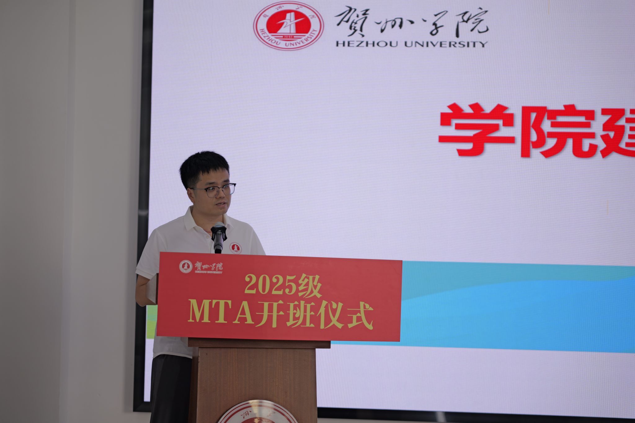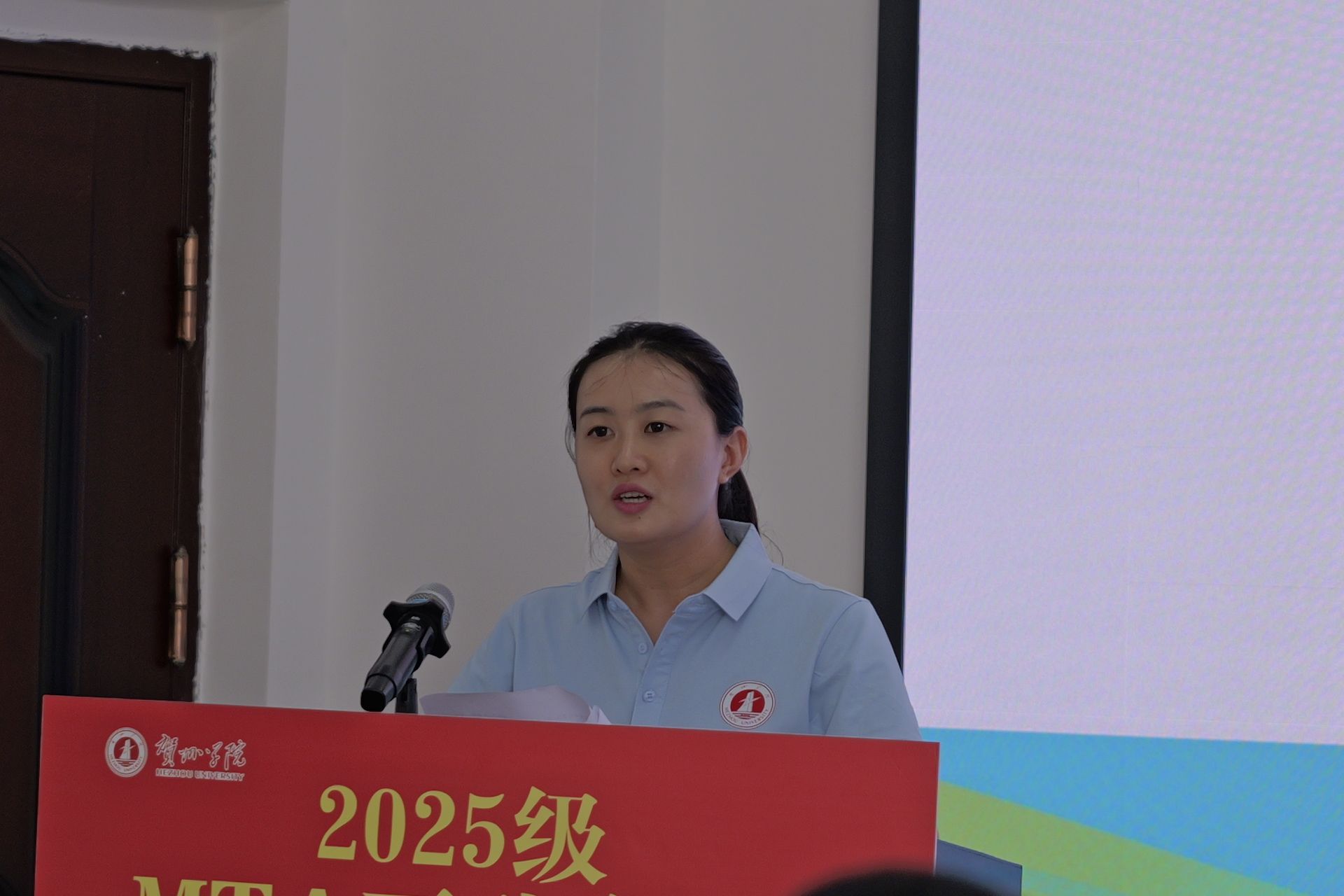 2025级MTA新生唐媛作为学员代表发言,她表示,未来将以“空杯心态”,虚心向学,以“问题意识”,驱动真知,以“知行合一”,践行担当。